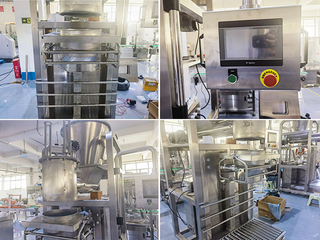 粉劑稱重包裝機(jī)廠家將軟件控制設(shè)定在這款設(shè)備當(dāng)中,使的它的工作方式更加的便捷,操作人員在著色劑自動(dòng)包裝機(jī)械的顯示屏幕當(dāng)中設(shè)定好目標(biāo)的重量、上料的速度、輸送方式等參數(shù)信息后,啟動(dòng)設(shè)備,系統(tǒng)將會(huì)按照程序自動(dòng)完成著色劑的上料、夾袋、充填、送袋、稱重等工作流程,這種工作模式較適用于大袋粉劑物料的連續(xù)式生產(chǎn)。