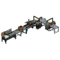 后道無人化全自動紙箱包裝流水線從自動開箱→自動裝箱→自動稱重→噴碼→自動I字型封箱→自動四角邊封箱→自動井字型捆扎→碼垛系統→自動棧板打包→自動水平捆扎→自動在線纏..
