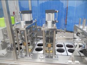 杯盒灌裝封口機從送杯、充填、液位控制、放蓋、兩次封口、推杯、輸送為全自動作業。